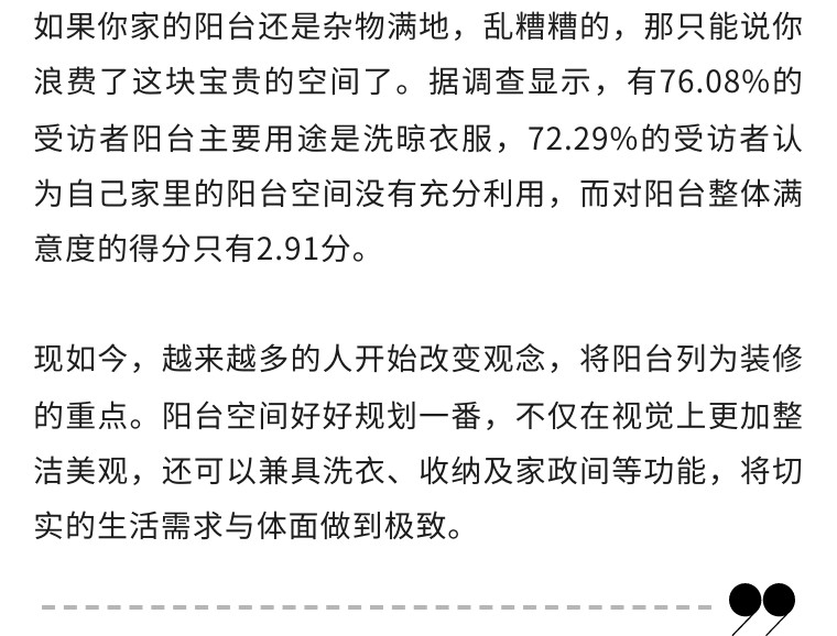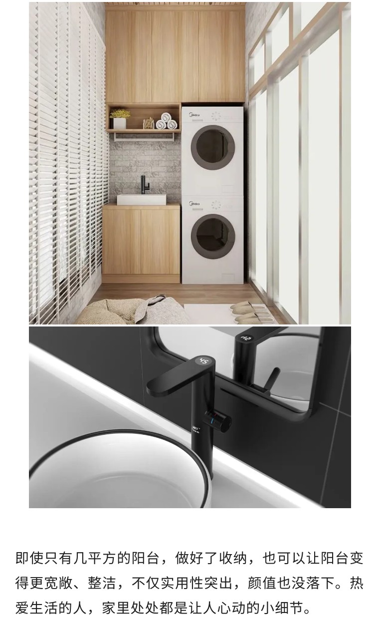 龍頭一開,熱水即來 陽臺,作為室內(nèi)建筑的延伸,用好了可以是居心地,用不好就是雞肋區(qū)。隨著居住者對生活品質(zhì)的追求,陽臺不再只是單一的晾曬區(qū)或“雜物間”,開始兼?zhèn)涓鄬?shí)用功能。