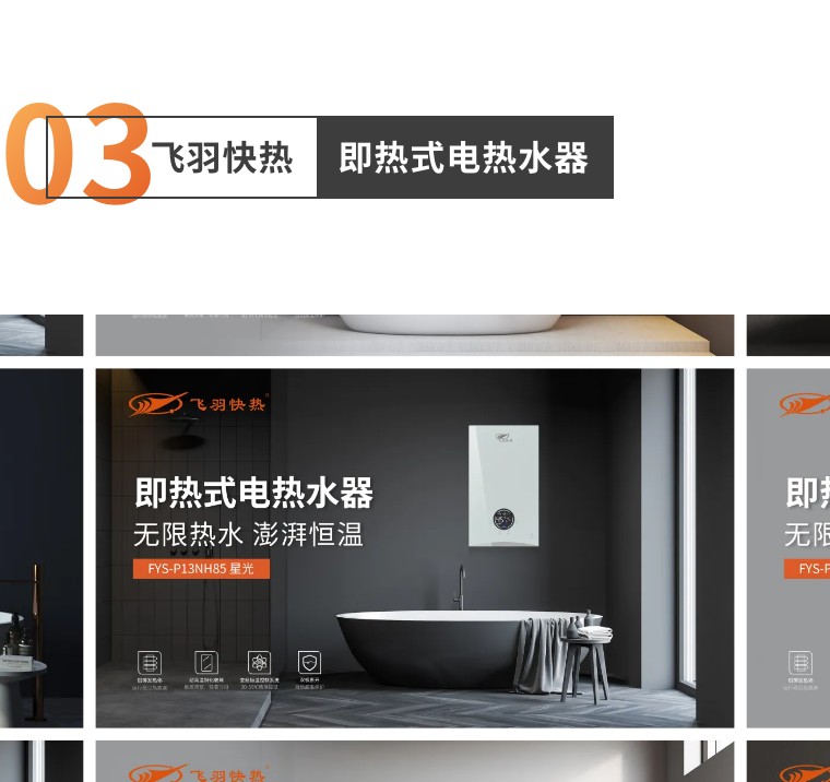 飛羽快熱作為全國即熱式電熱水龍頭的引領品牌,長久以來都優秀品質和創新技術在業內聞名。本次參展,我們也將為大家帶來業內最新的“真恒溫”電熱水龍頭和即熱式小廚寶、即熱式電熱水器等多款市面熱銷產品,給消費者帶來溫暖體驗“新升級”的同時,也將為當地行業市場注入全新活力。