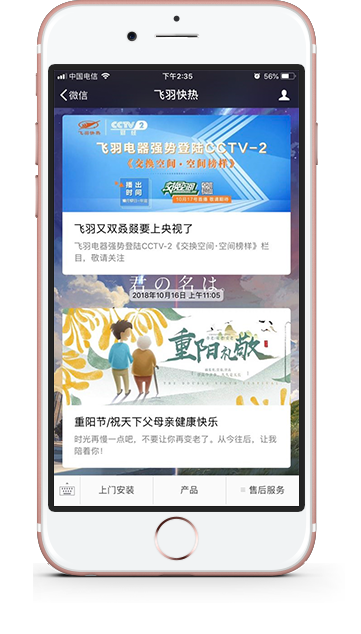 進入公眾號,點擊“上門安裝”,并填寫相關信息。